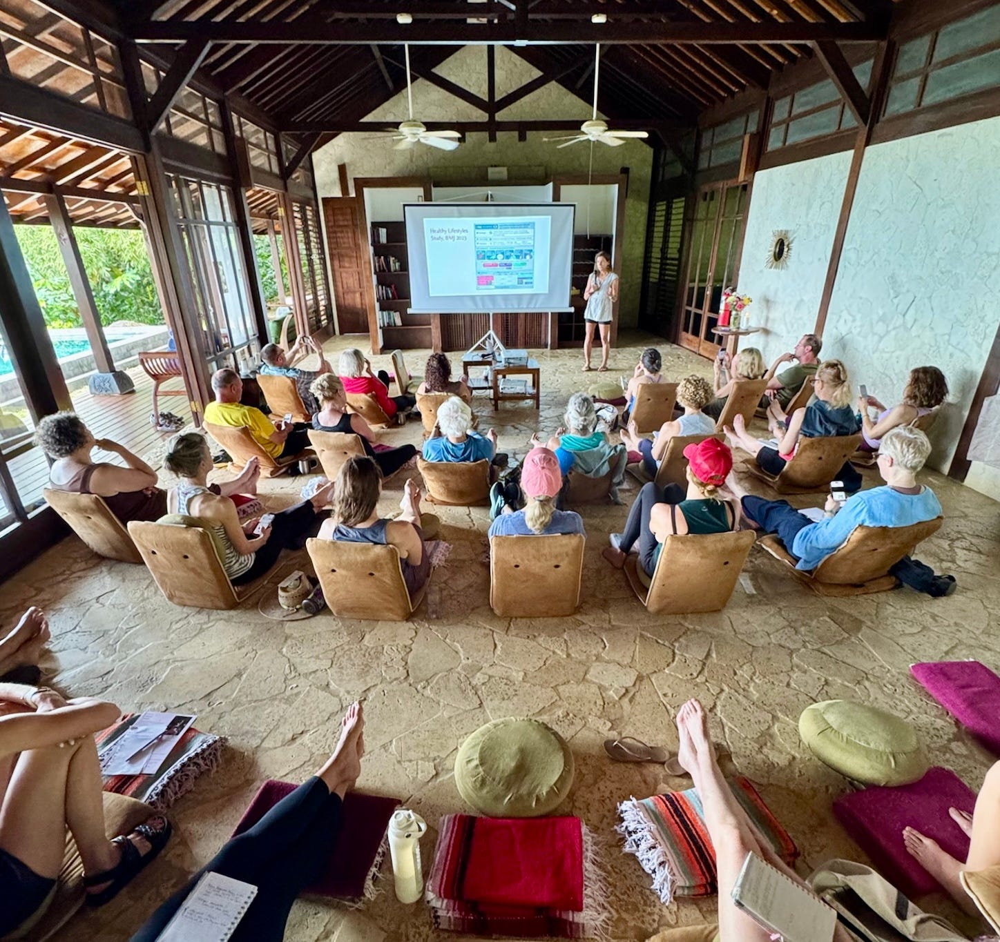 Hello, everyone. I am writing to you from Costa Rica in the midst of the first Brain Health Retreat of 2025. In between hiking to waterfalls, doing restorative yoga, and feasting on incredible plant-based food, we have been immersed in brain health discussions. A special guest of this year’s retreat is neuroscientist Julie Fratantoni, PhD of Better Brain. Our first topic was all about Blue Zones.