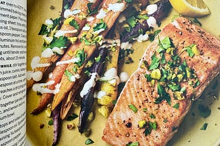 Salmon & Carrots with Pistachio Gremolata, Mini Apple Walnut Crisps, Homemade Soy Milk
