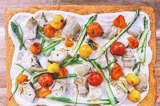 Socca Skillet Pizza and Socca Deep Dish Pizza with Spring Veggies